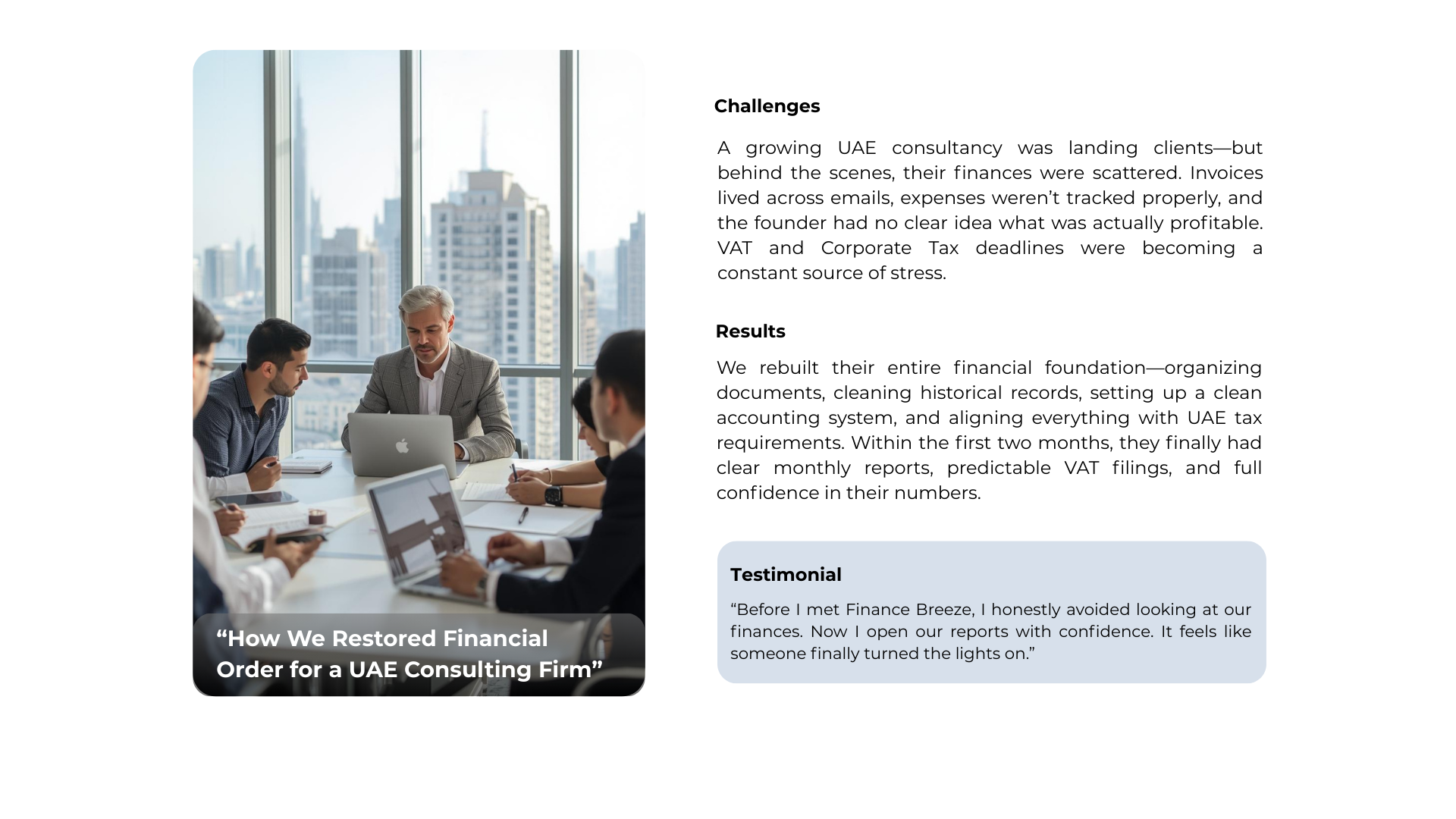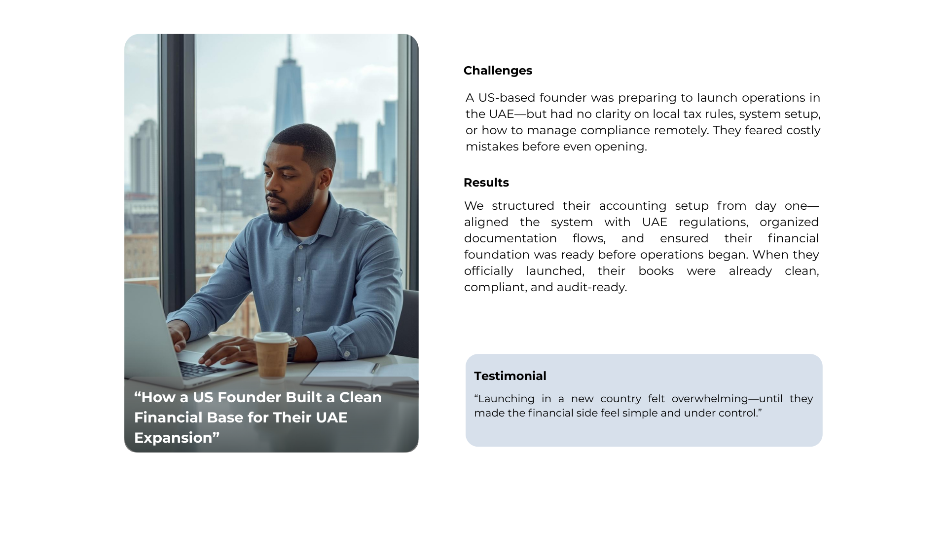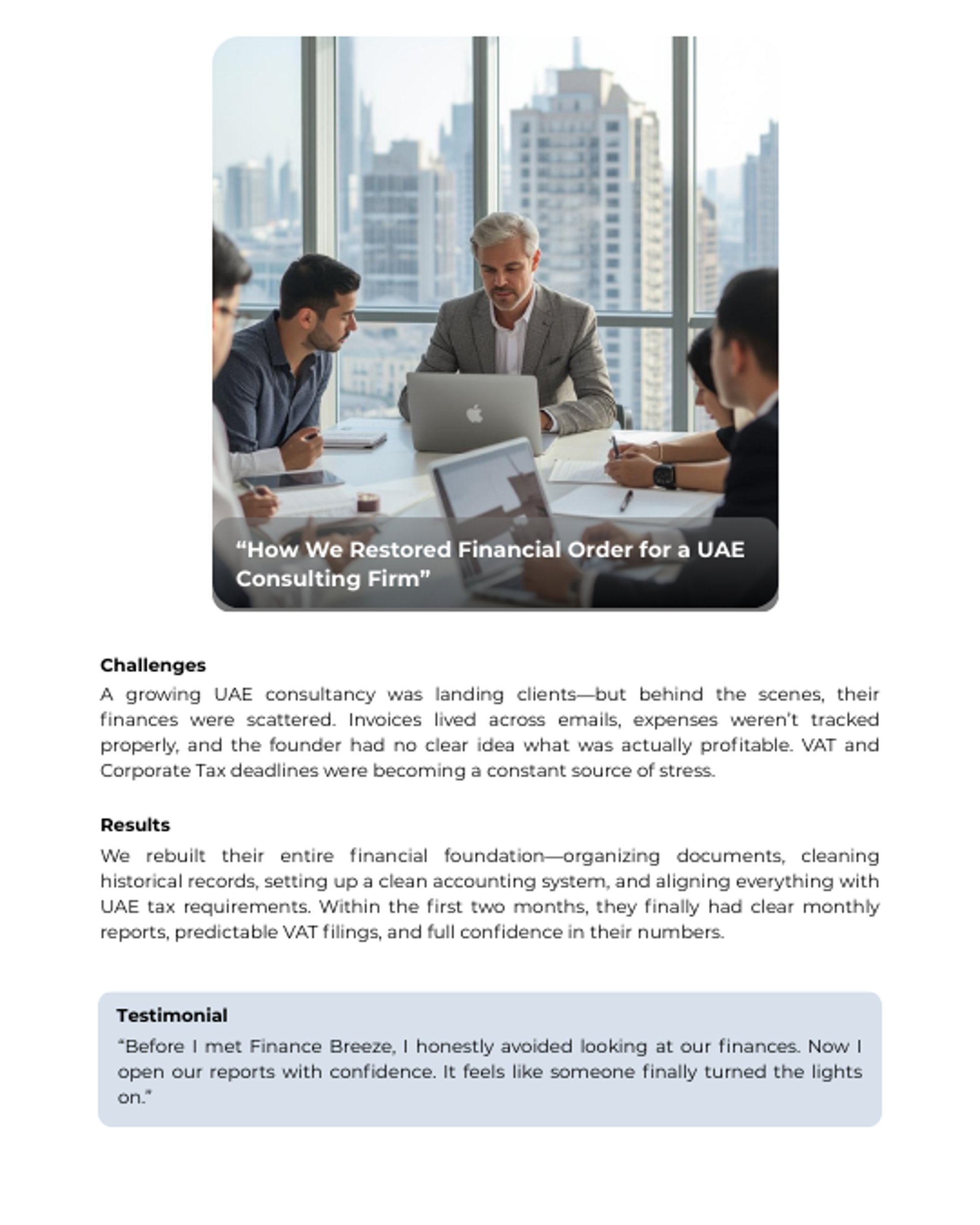 Start with a clarity call so we understand your business, financial structure, risks, and next growth priorities.